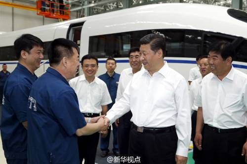 習近平說,這兩年他走了很多國家,談的最多的合作項目之一就是高鐵。俄羅斯莫斯科到喀山的高鐵建設,就是他同普京共同見證簽署的項目。習近平希望高鐵建設再接再厲、創新驅動,繼續領跑、勇攀高峰,帶動整個裝備制造業形成比學趕幫超的局面。
